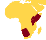 Horn of Africa and the Southern Africa. Found in the East African arid