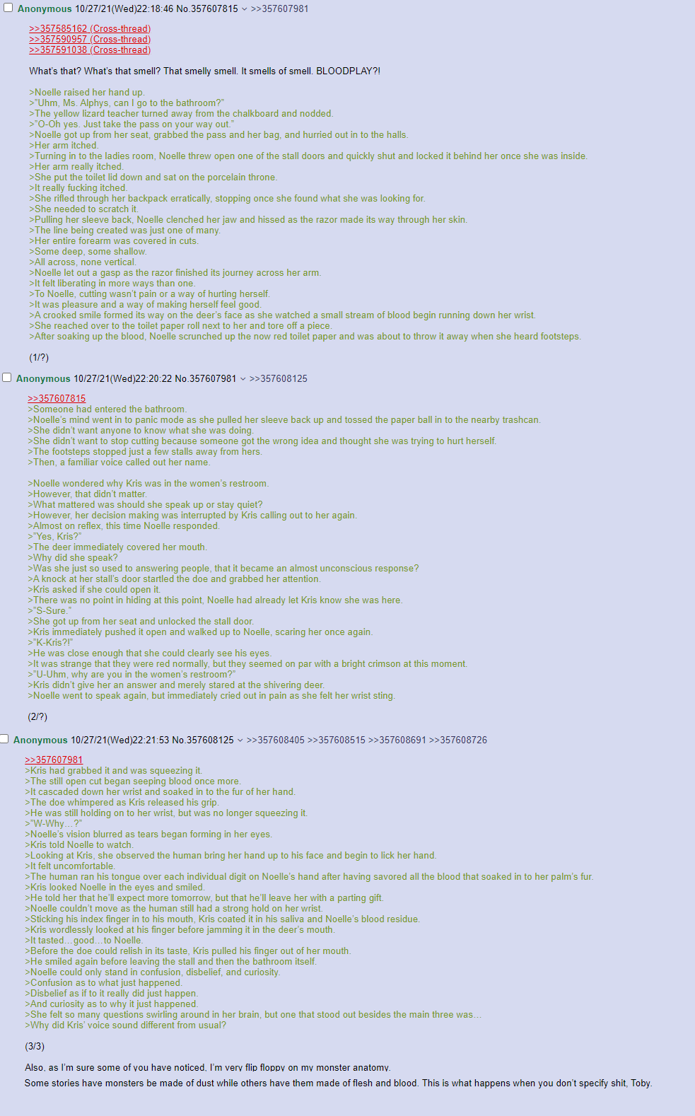 | DIR | [Wendigo+Bloodplay] Oneshots and Prompts/ | 15 | 2025-10-05 19:16:36 |