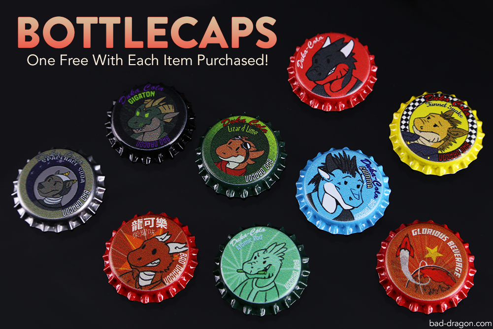We’ve acquired the last bit of bottle caps from the remaining wasteland vaults and will be including one bottle cap for every item purchased while supplies last. Now you can get those elusive rare bottle caps you may have missed during the days of Dragontech!