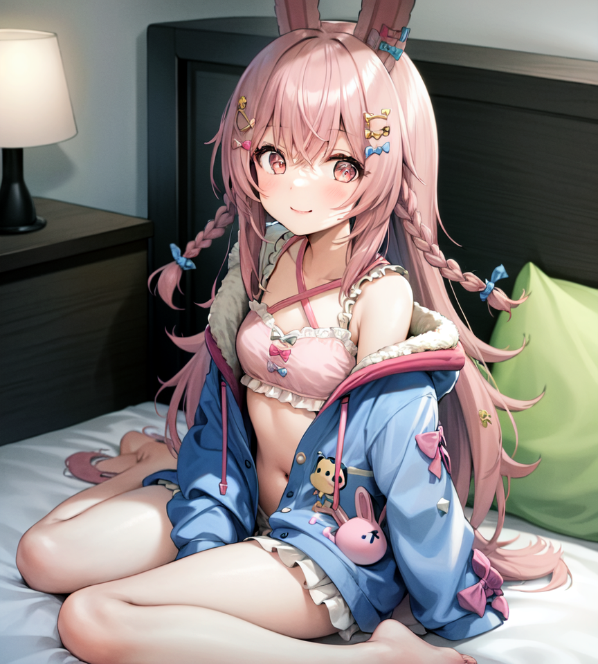 | - | 00280-3352008834-1girl, pink hair, braids, rabbit ears, jacket, hair ornament, bows, ribbons, smile, barefoot, looking at viewer, bedroom, bed, p.png | 1224351 | 2023-01-15 19:44:21 |