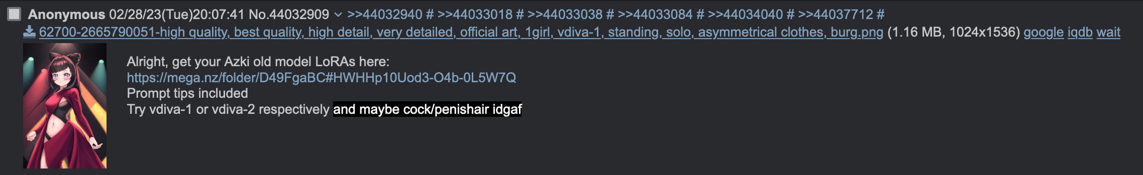 | - | Screenshot 2023-03-01 at 06-09-11 (!) (265) _vt_ - Archived - _vtai_ - VTuber AI-generated Art - Virtual YouTubers - 4chan.png | 225315 | 2023-03-01 05:09:13 |